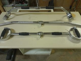 Divers Barres de tirages en Acier avec axe pivotant et poignées en caoutchouc pour confort d'entrainement. Utilisation pour machines de musculation . Dimensions correspondantes dan