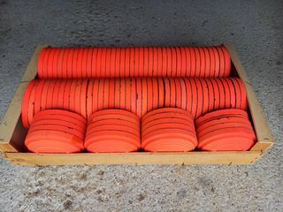 Lot de 100 plateau en résine noire pour Ball Trap, couleur extérieure orange fluo Peut servir pour cible tir Ball Trap, décoration DIY, cendrier original, etc.. Poids d'un pl