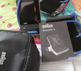 Appareil de mesure de tension avec 2 brassards, de marque Braun acheté chez Boulanger à 59.99 e, jamais servi vendu avec les piles et sa trousse d'origine