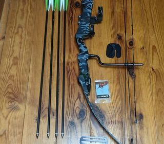 Arc de chasse à poulies, très peu servi 30 flèches Puissance jusqu'à 55 lbs Avec carquoi et 4 fléchés en aluminium