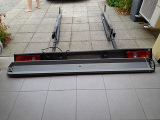 Porte moto pour camping car sur chassis rallonger ( Long 7.40 m),charge 120 kg,peux servir de porte vélo , avec rampe d'accès. Marque SAWIKO.