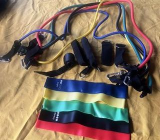 Vend lot complet d'élastiques de sport idéal pour musculation, fitness, renforcement musculaire, pilates, rééducation, home gym. ?? Plusieurs niveaux de résistance (léger à fort