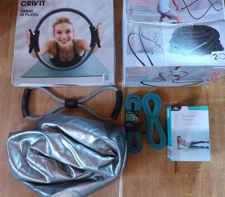 Je vends différents articles de fitness, faites votre choix .Les cordes ont été vendues, Il reste le cercle de fitness à 10e le gros ballon à 5e et les élastiques à 5e l'un, Envoi