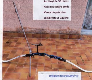 Arc classique HOYT de 30 Livres Avec contre poids horizontaux et verticaux Viseur de précision ?il directeur gauche Expédition par MONDIAL RELAIS ou remise en main propres
