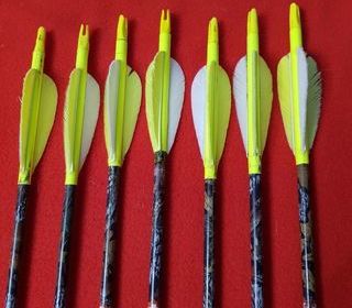 beman camo hunter spin 400 pointe 100 grains longueur flèches 70.5 de la pointe à l encoche plumes naturelles servis une demie saisons cause changement d arc et de puissance les