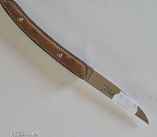 Couteau Le Thiers Robert David , manche en cuir cousu , Mécanisme: pliant Qualité acier 12C27 et :Lame en acier inox , manche en cuir cousu