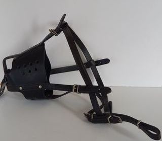 Muselière de type police en cuir de qualité fabriqué en France taille 10 80 cm de tour de cou respecte le bien-être de l'animal. Elle est équipée d