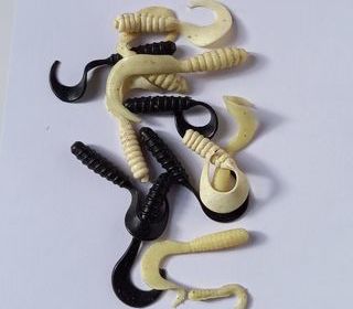 Sachet de 13 Leurres crémes et noirs souples 3-6 cm PAFEX, pêche. - Longueur : 3 - 6 cm les frais de port sont compris