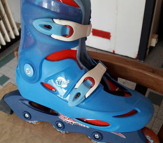 Rollers DECATHLON pointure : 36. 15 €. Avec protèges genoux, coudes et poignets. ( POWERSLIDE ). tel : à retirer sur place.