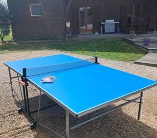 Table ping pong extérieure jamais servie + 2 raquettes et balles dans emballage. Pliable stockée à l intérieur. Prix : 240 euros