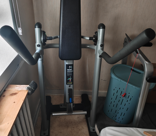 Encore en très bon état, portique adulte, AMCA grande taille 3m de larg./ 3m de haut/ au plus large 5m40 ( pieds ) 8 crochets ( queue de cochon ) à vous d'y ajouter les accesso