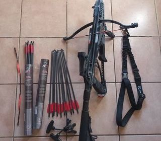 Vends très bon état, utilisé 2 fois en 2 ans, Arbalète Cobra Deluxe 90 lbs avec crosse, viseur, poignée, sangle (229€ prix d'origine) + lot de 20 traits en carbonne (60€ prix d'or