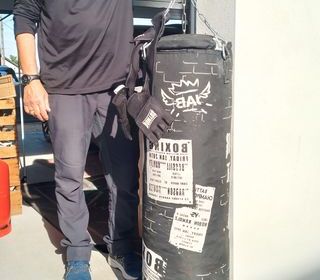 boxing ball de chez Decathlon , hauteur 1 M. chaines pour suspendre et gants fournis, disponible , à recuperer sur place ou rdv à prevoir