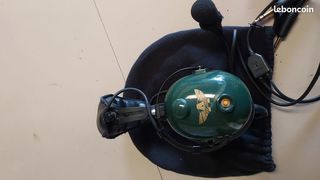 AVCOMM Head set aviation de couleur vert bouteille , fiches jack , en parfait état , avec une housse de protection ,