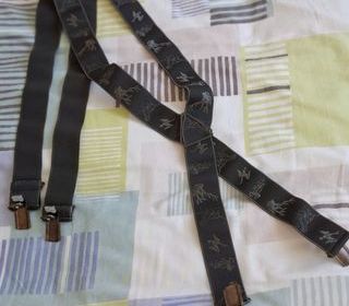 Bretelles Couleur verte ,motif gibiers. 100cm . Bon état