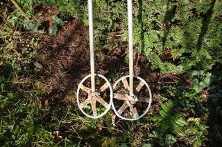 Anciens bâtons de ski années 1950 Les bâtons sont en aluminium, les poignées en cuir cousues, dragonnes en cuir, les rondelles en alu et cuir. Hauteur : 1,02 m diamètre des r