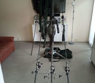 4 cannes '4 détecteur fox' 4sunger'fox' 4 moulinet une épuisette ' un repose canne ' un fouraux un tapis de réception habillé une centrale mag 2