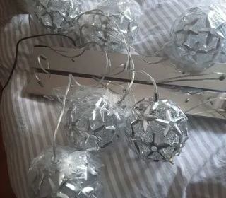 SUSPENSIONS DESIGN EN ACIER X 2 LA SUSPENSION CONTIENT TROIS BOULES LED EN ACIER REPRESENTANT DES ETOILES LONGUEUR DE LA SUSPENSION 68 EN ACIER BRILLANT LONGUEUR DE LA SUSPENSIO