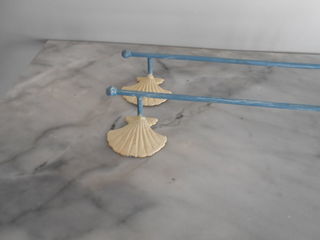 Deux barres de suspensions, porte serviettes ou autres en fer bleu cérusé avec embouts coquillages système de fixation a chaque embout 10 euros les deux a récupérer sur place