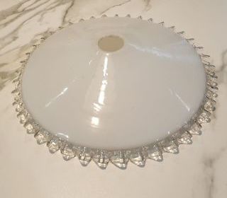 Abat-jour pour Suspension blanc ancien en verre opaline dentelée 25 cm diamètre Ce réflecteur pour plafonnier était utilisé dans les années 30/40 Style Art-déco Dimensions envir