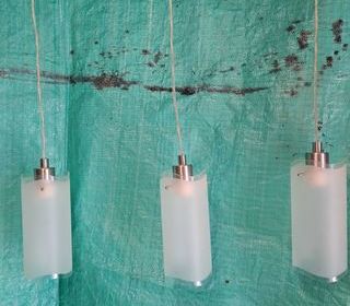 Suspension composée de trois éléments de 10 cm de diamètre et de 23 cm de hauteur Matière : verre dépoli Autre : acier chromé Réglable en hauteur Type de douille E27