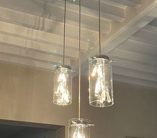 Je vends cette suspension de style contemporain avec 3 luminaires en verre argenté, parfaite pour les hauts plafonds - Type de produit : Suspension 3 luminaires - Matériau : Ve