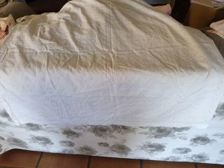 Lot de tissus vintage : - housse de petit édredon blanc : Longueur : 81 cm - largeur : 78,5 cm - hausse de petit édredon à fleur : diamètre : 73 cm - tissu pour suspension ancie