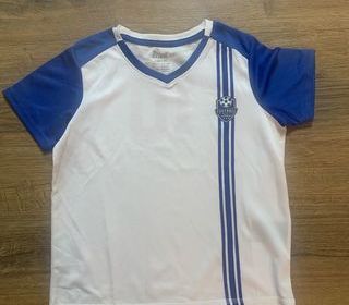 Vends Tee shirt enfant motif " Football " - Taille 8 / 10 ans - Couleur Blanc / bleu / rouge - Très bon état - Prix 3 euros