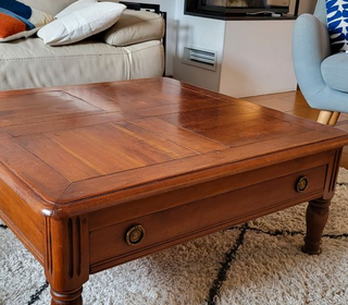 Jolie Table Basse en bois massif. Belles Dimensions 90cm X 90cm Hauteur 38 cm.