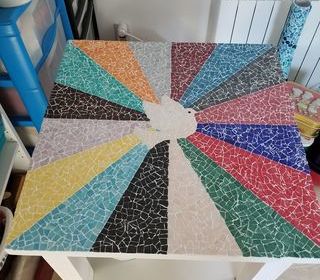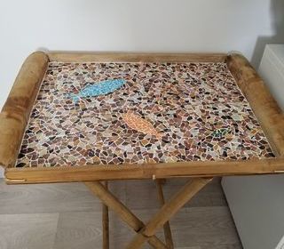 Vends table basse pliante en mosaïque. Modèle unique. 80 euros.