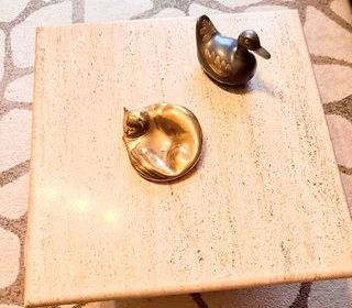 Table basse travertin Ligne Roset, vintage année 1970 Dimension 55 cm x 55cm, hauteur 28cm, table en deux parties, plateau épaisseur 3cm est posé sur un socle, poids 20kg Remise