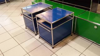 Vend 2 tables de chevet ou autre rangement de marque usm haller et de couleur bleue gentiane ou rouge de 2 cases dont en partie basse un tiroir profond et au dessus une petite réh
