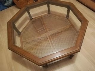 meuble asiatique + sa table de salon , motif en relief , très bon état