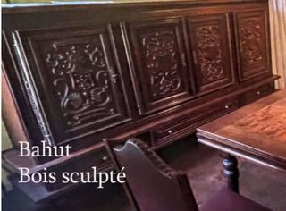 Salle à manger complète relookée par un professionnel. Ton blanc / gris cérusé. Table blanche +2 allonges et 8 chaises blanches . Living parfait état. Coups d'usure au nivea