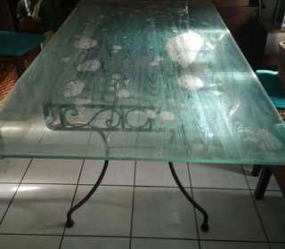 Vend table pied fer forger plateau verre 1m80 sur 1 m tres bon etat acheter mobilier de france il y an a une nappe trensparente dessus pour la protéger voir photos urgent cause de