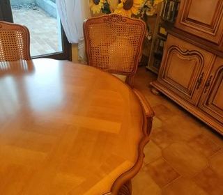 À Vendre : Super Table + 6 Chaises Description : Belle table spacieuse, parfaite pour les repas en famille ou entre amis. Livrée avec 6 chaises assorties, confortables et en exc