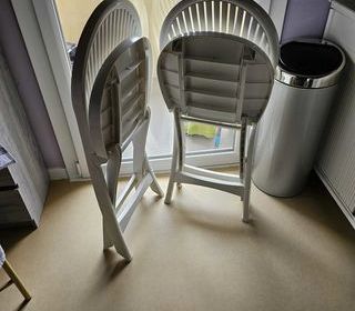 Table ronde avec deux chaises. Diamètre 65 cm.