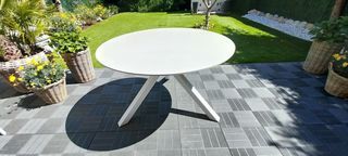 SUITE A VENTE VILLA , JE VEND MA TABLE DE SALON EN MERISIER AVEC 6 CHAISES ASSORTIES . DIAM 130 AVEC 2 RALLONGES 240 , TABLE ETAT NEUF. FACTURE 4100 EUROS. A Prendre a CASTRIES 3