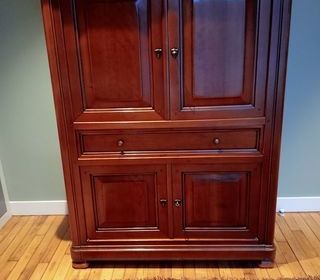 Meuble télévision années80 Permet d'y mettre un téléviseur, un lecteur DVD ou VHS ou ampli. Partie basse tablette coulissante pour lecteur disques vinyle. Rangements. En dernie