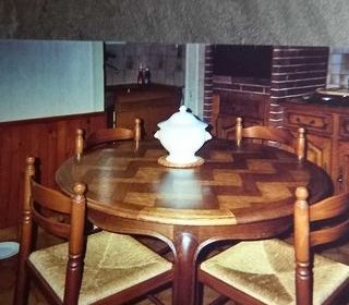 Très jolie table ronde avec un verre sur mesure. Elle possède deux rallonges et devient ovale pouvant accueillir 12 convives Vendue sans les chaises