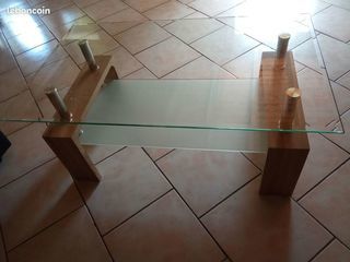 Table salle à manger : dessus verre et pieds fer forgé Table basse salon assortie 4 chaises assorties et paillées Lampadaire
