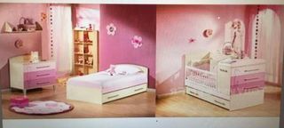 nous vendons le mobilier de la chambre de notre fille de la marque IKÉA qui comprends : lit + table à langer , modèle Myllra ( prix actuel 748 euros) très très bon état armoire m