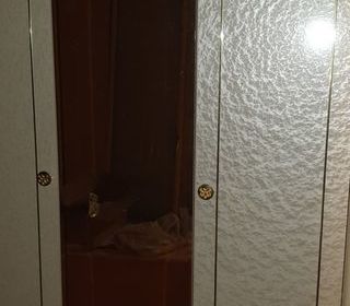 Vend ensemble composé d'une armoire 2 portes, 1 porte miroir, 1 lit avec 2 tables de chevet attenantes rondes à tiroir et une tête de lit . Couleur beige saumoné clair. A récupérer