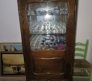 Vends argentier en merisier en très bon état avec tablettes en verre. A prendre sur place avec le paiement.