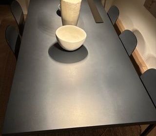 vends une table à manger moderne blanche laquée avec 6 chaises en velours noir, ensemble élégant et en très bon état. Dimensions : €¢ Hauteur : 76 cm €¢ Largeur : 80 cm €¢