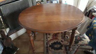 URGENT vend table ovale bois massif rustique bon état avec 1 chaise également Dimensions table dépliée 1,00m x0,87m Pliée 1,00m x0,48m avec 2 rallonges de 25 cms d'état moyen P