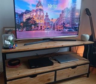 Je vends une bibliothèque en couleur bois naturel. Le tout en pin massif brut ; vernie non peinte. Elle est démontée. La table basse est une table IKEA. Elle a des traces en sur