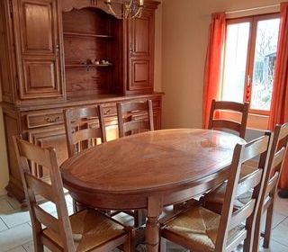vends salle a manger en chene,buffet plus table avec rallonges et 6 chaises,bon état,pas d'envoi.