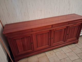 1 Bahut 4 portes + 4 tiroirs 1 table ovale avec rallonge 6 chaises dessus paillé.