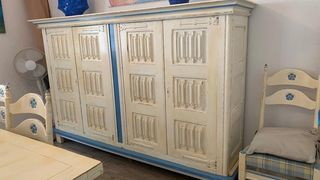 Une bibliothèque vitrine en meurisier 1 bahut 3 portes une bonnetiere meurisier 1 meuble tle meurisier 2 petits meubles merisier I lit Louis Philippe meurisier plus armoire assorti